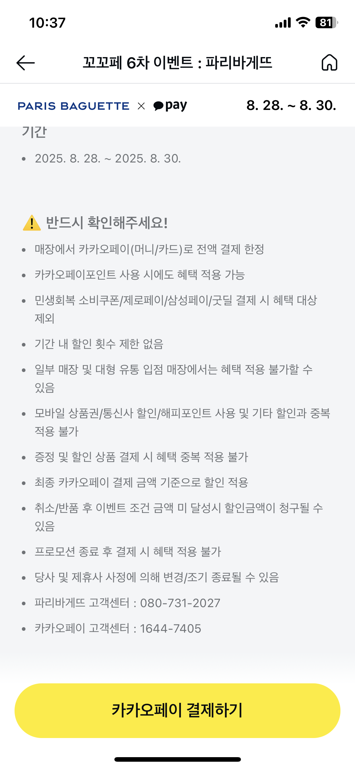 8/28-8/30 동안 카카오페이로 파리바게트 5천원 즉시 할인을 받아보세요.